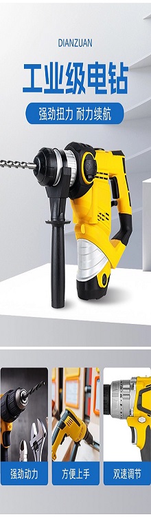 欧约电镐电锤电钻多功能冲击v钻混凝土工业级大功率两用电捶搞电